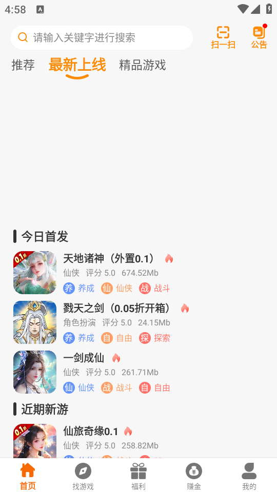 首页和找游戏页面都汇聚了海量游戏资源,仙侠、射击、玄幻等各类题材应有尽有。