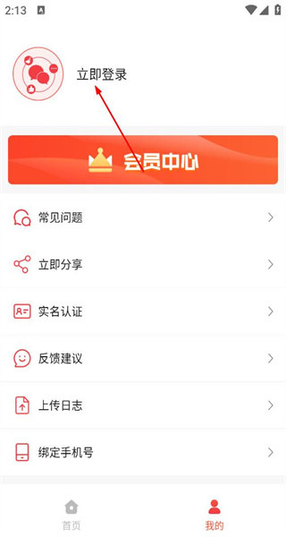2、在个人中心页面,看到立即登录提示,点击该区域,进入账号的登录操作界面。