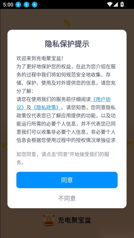 首先打开应用点击“同意”按钮来进入中。