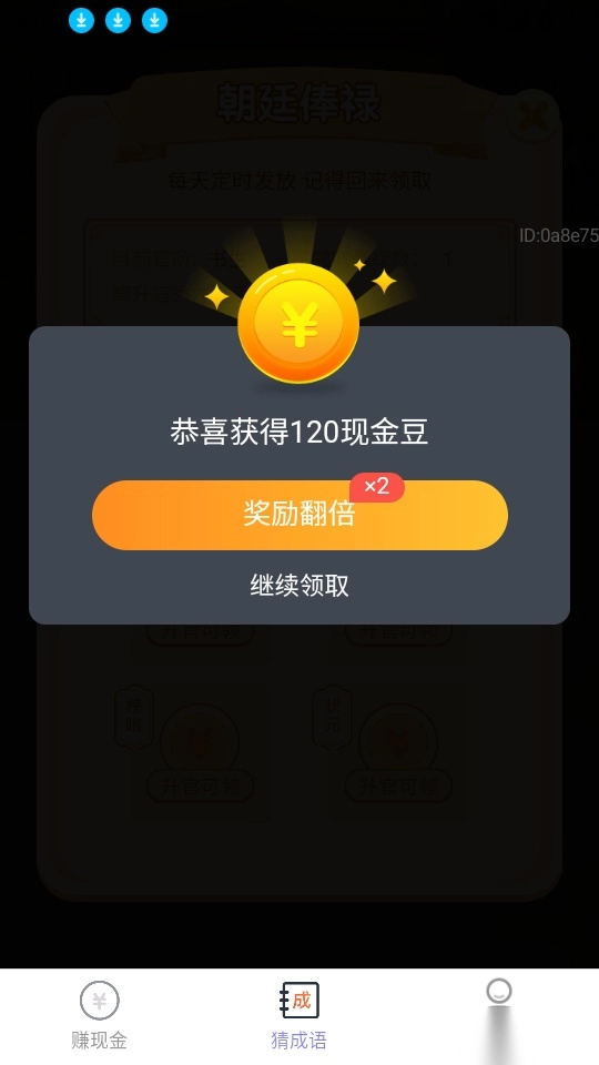 这样就能得到现金豆啦,点击“继续领取”就能实时获取更多俸禄。