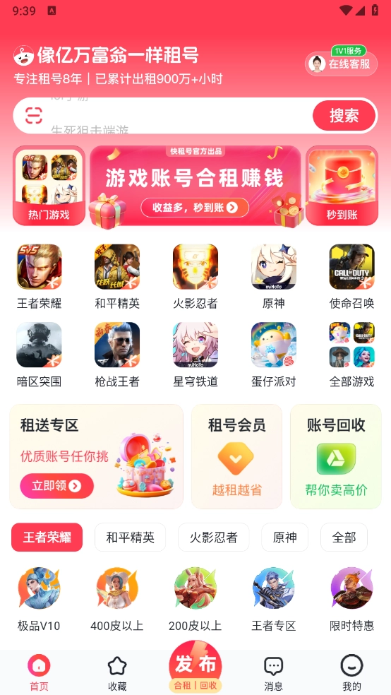快租号是个特别靠谱的游戏账号交易平台,这里汇聚了各类热门游戏的账号交易资源,像王者荣耀、蛋仔派对、星穹铁道这些都能找到。平台上所有账号都是正版的,而且得经过严格审核才能发布,用户自己要是有优质账号也可以在这里发布哦。