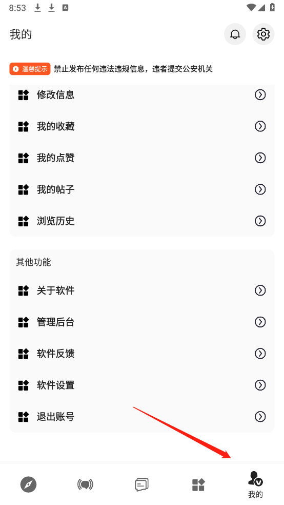 1、点击“我的”。