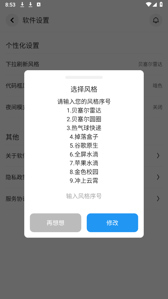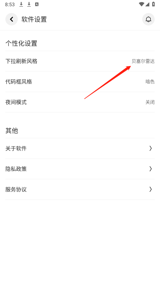 3、然后点击“下拉刷新风格”,在弹出的列表里挑选对应的风格就可以了。