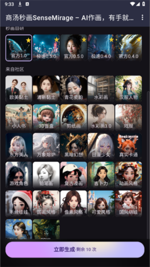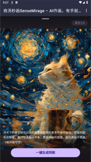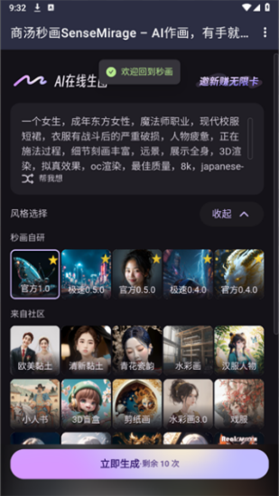 1、在本站将秒画安装到手机上,打开应用后,您可以选择AI绘画功能,然后选择生成同款图像。