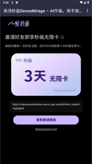 1、复制链接或扫码后转发给好友,就能完成注册邀请。