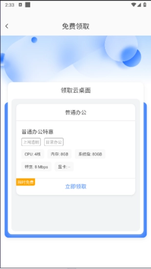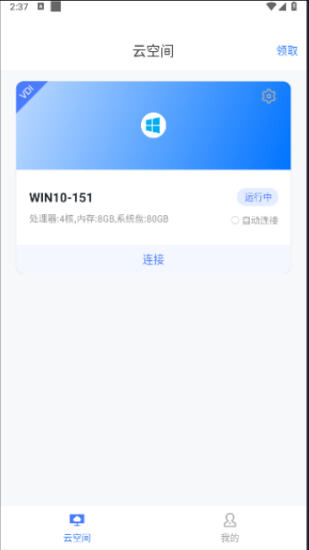 1、新用户完成注册后,均可免费登录领取一台云空间。