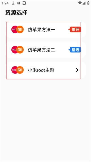 进入应用首页后,选择“小米/红米/仿iOS”这一设备分类,即可进入对应的资源选择页面。