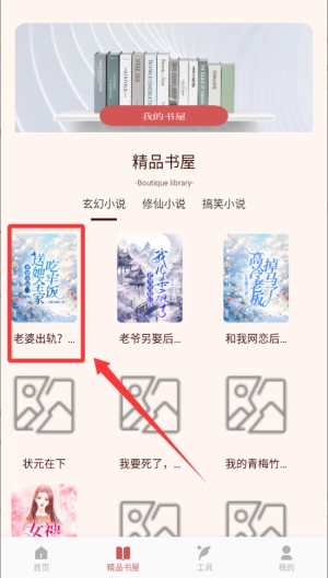 3、精品书屋与小说推荐:在精品书屋中展示平台精选小说,用户可根据推荐直接选择感兴趣作品阅读。