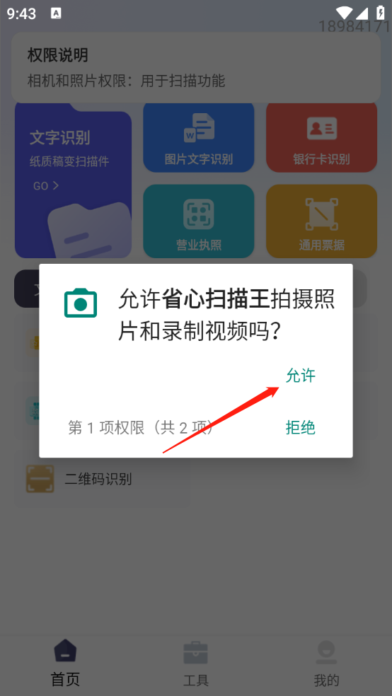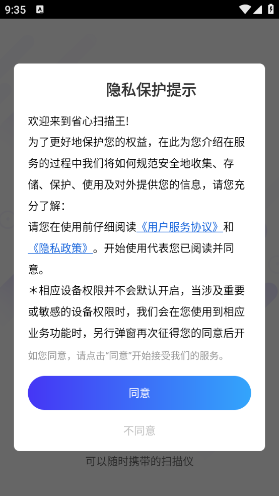 1、安装好省心扫描王软件,同意相关政策与协议。