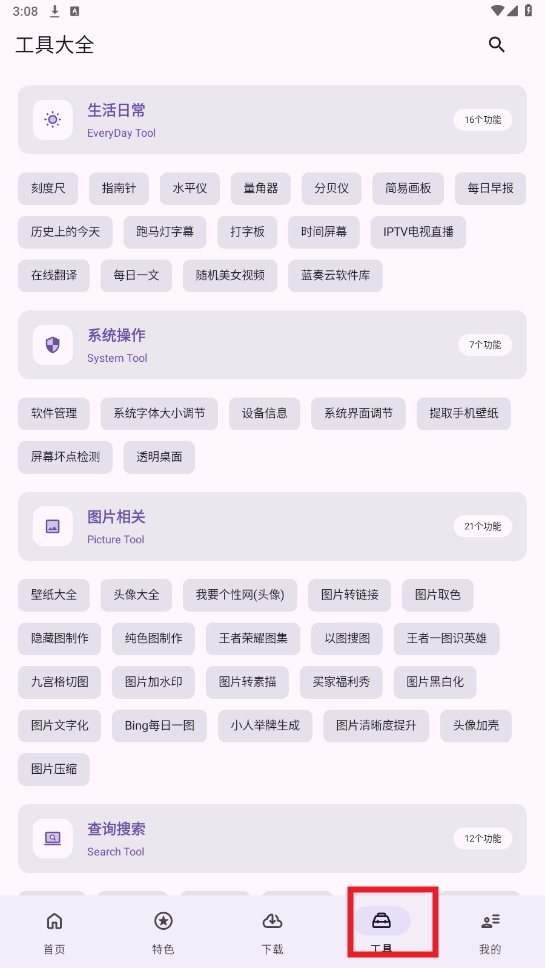 8.工具大全,为用户提供了非常多生活实用,系统操作,图片相关的小工具,点击即可在线使用