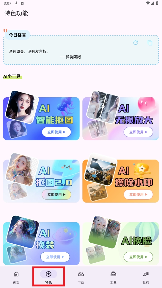 6.特色功能为用户提供了ai抠图,ai无损放大等超多修图功能