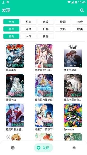 之后你就能在这里慢慢挑选自己感兴趣的漫画了,像热血漫画、恋爱漫画这类不同类型的都可以。
