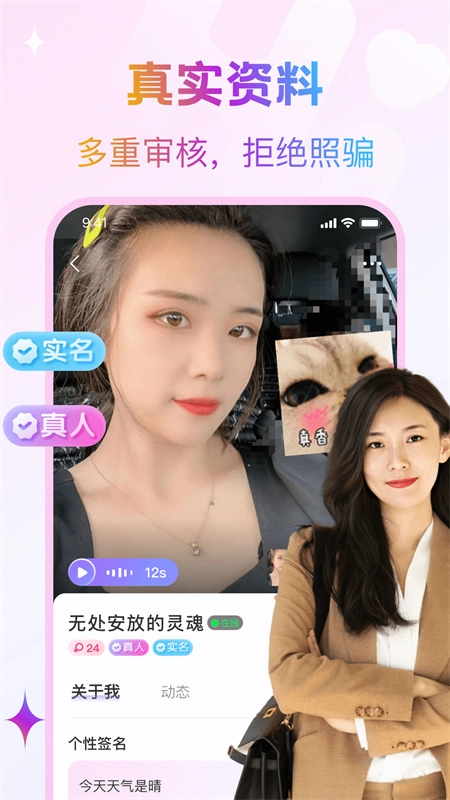 4. 通过视频认证,每个用户的素颜真实样貌都能完整呈现,助力找到更多真正的俊男靓女。软件简评:
