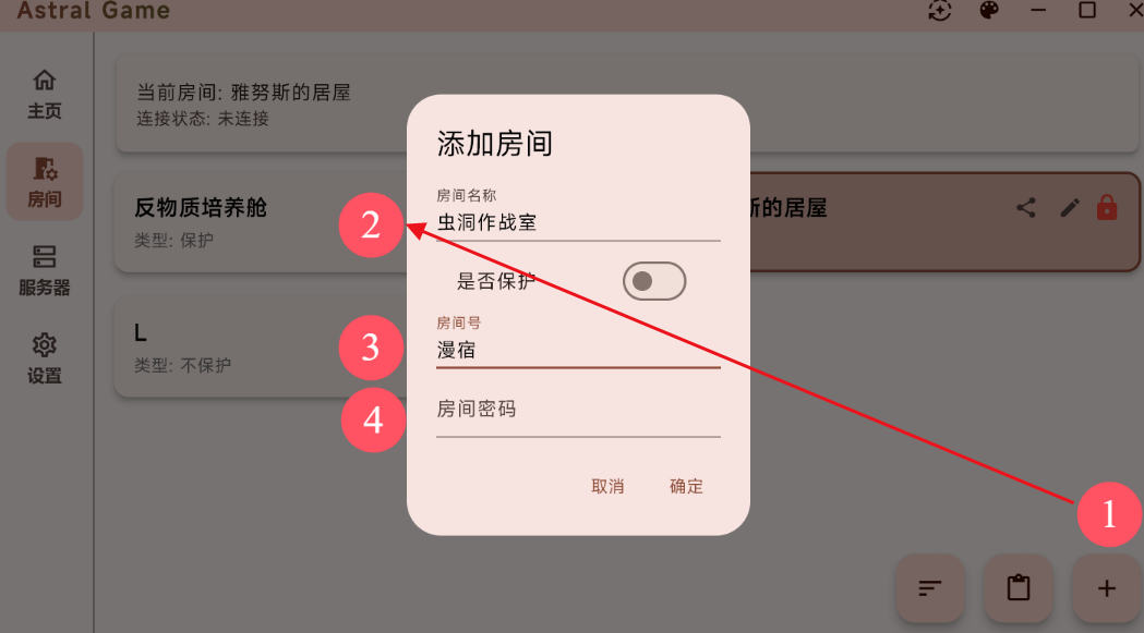 房间密码(可选):为房间设置密码保护,不要过于简单