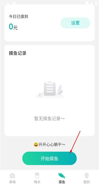 保存完成后进入摸鱼记录页面,这里会展示今日已获得的摸鱼金额以及摸鱼记录板块,点击“开始摸鱼”按钮即可启动记录功能。