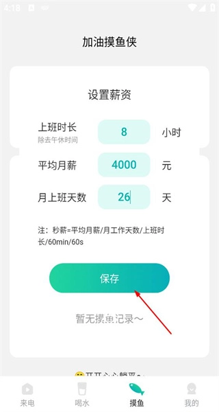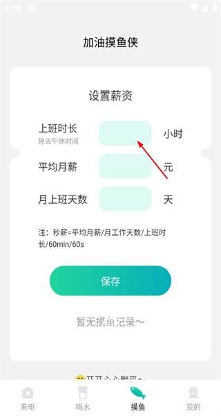 打开软件后,进入摸鱼板块,就能看到设置薪资的界面,接着开始输入薪资数据。