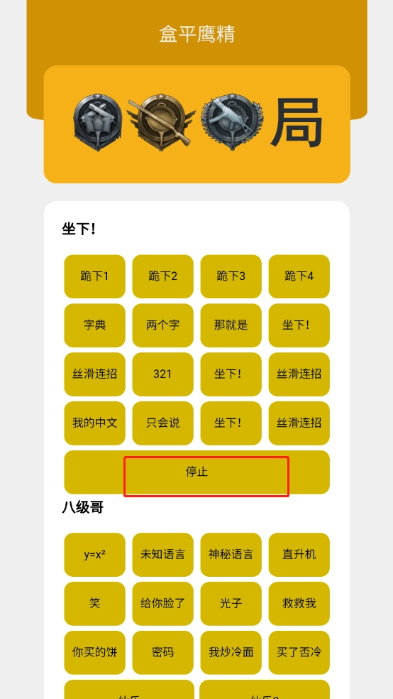 盒平鹰精,是一款专为和平精英玩家设计的游戏辅助工具,玩家在游戏过程中即可使用,能发出各类趣味声音,语音包种类丰富,安全无病毒,支持悬浮窗功能,不会干扰其他功能的正常使用,并且还会持续更新更多语音包,感兴趣的玩家不妨来体验一下。
