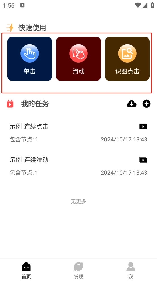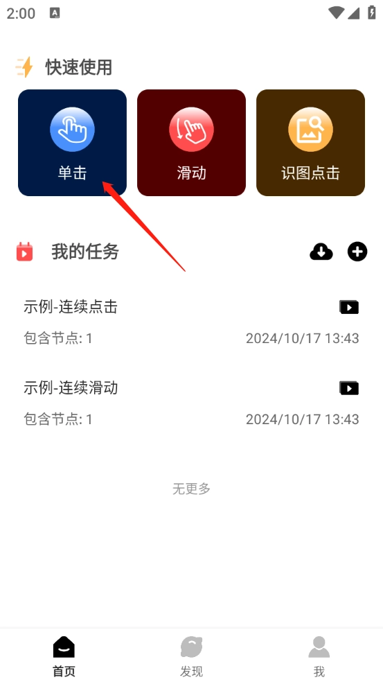 3、接下来设置点击类型,涵盖单击、滑动和识图点击。
