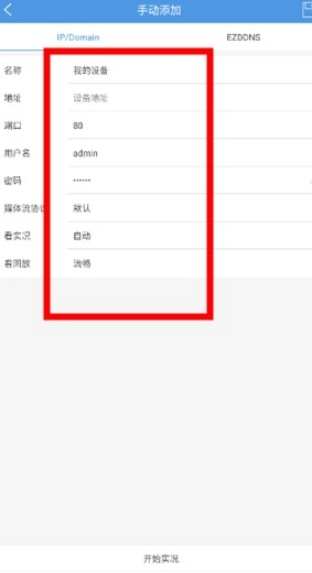 要是没找到设备,就点击“手动添加”,输入录像机的IP地址和登录密码,再点击“开始实况”,这样就能完成添加了。