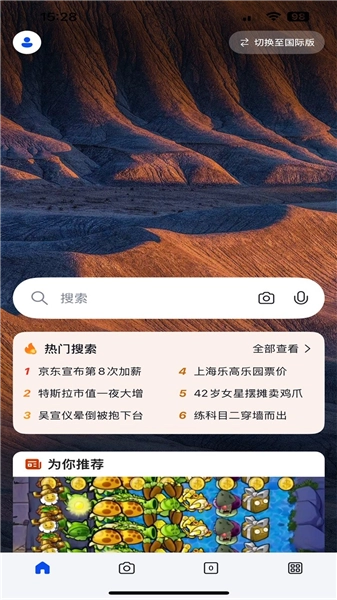 1、【首页升级】对应用的首页做了重新设计,布局更加简洁清爽,聚焦核心功能,切换国内版和国际版搜索更轻松。