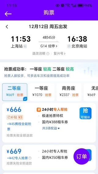 3、根据你的出行频率和偏好,自动推荐合适的车次,总能挑出最适合你的行程。