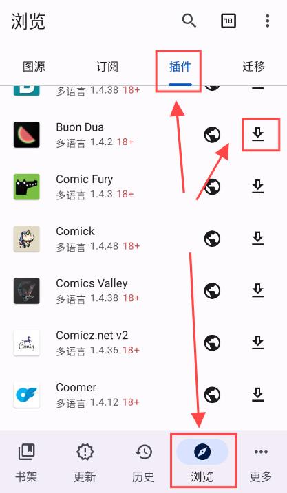 安装完成后,点击“图源”选项,再点击刚安装好的插件,就能开始阅读漫画了。