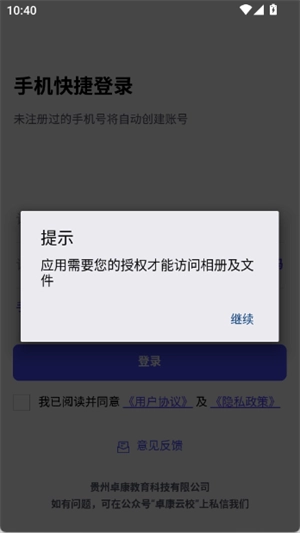 3、授权后返回登录界,然后直接输入手机号、验证码进行登录即可