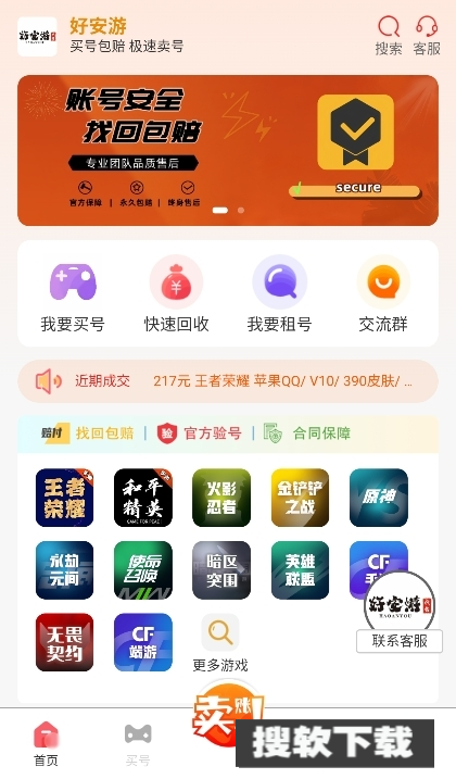- 标签: 好安游游戏平台 安全交易保障 海量游戏账号交易