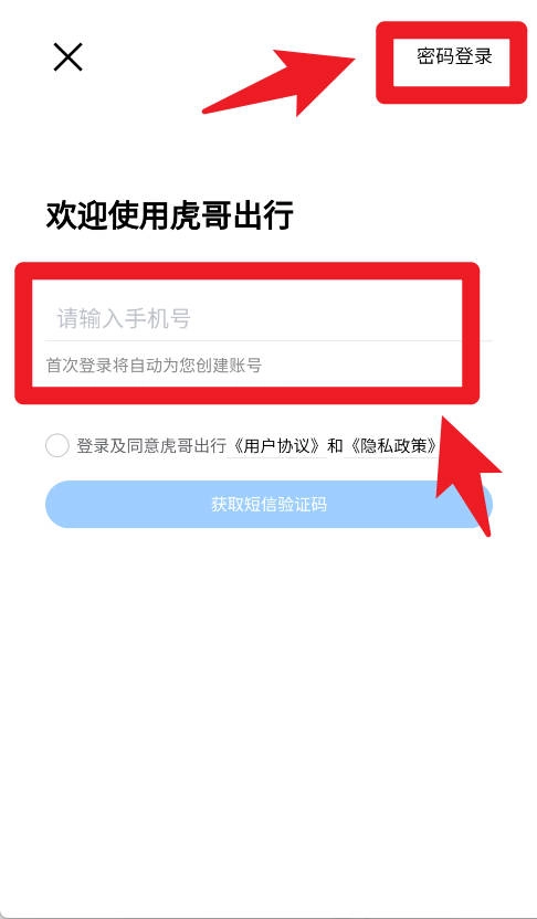 在登录界面,用户可通过输入手机号完成注册或登录操作,也能选用密码登录的方式;若为首次登录,系统将自动创建账户。
