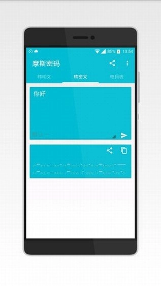 这款应用具备摩斯电码输入的功能,用户输入摩斯电码后,系统能够将其转换为对应的文字内容。