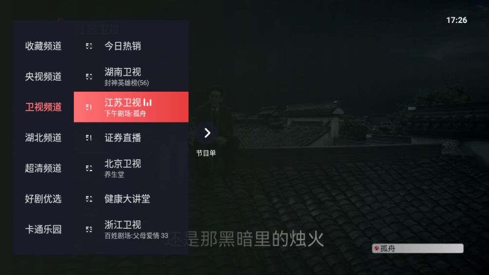 2、进入首页,点击屏幕,左侧会出现很多频道