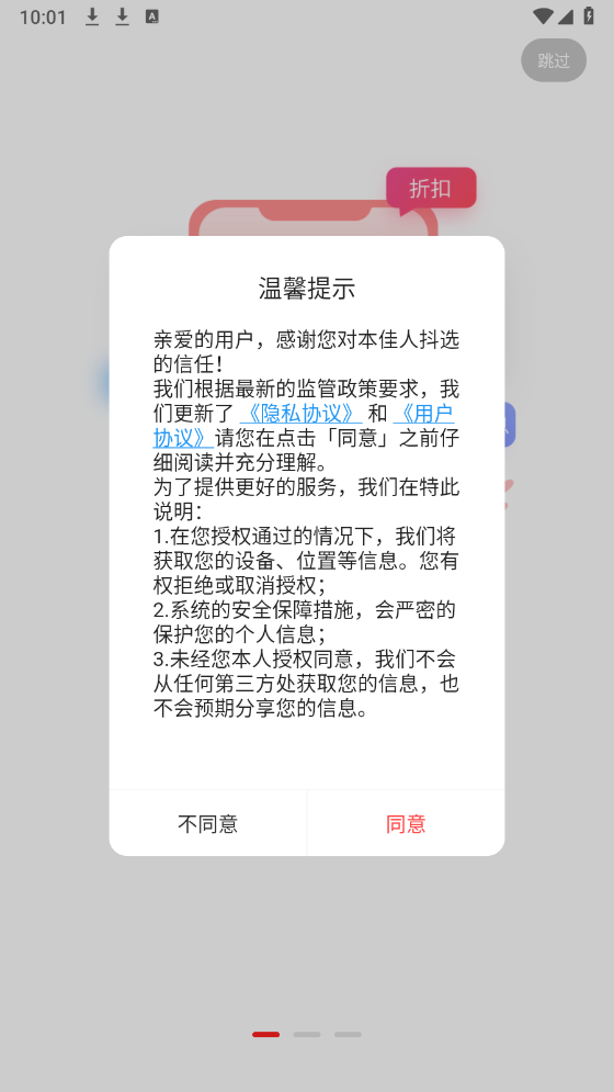 1、在本站完成佳人抖选的安装,同意相关政策与协议后将其打开。