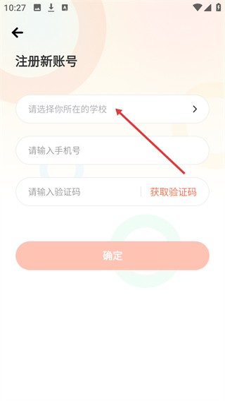 2、进入【注册新账号】界面后,需先点击【请选择你所在的学校】选项,后续还需填写手机号并获取验证码。