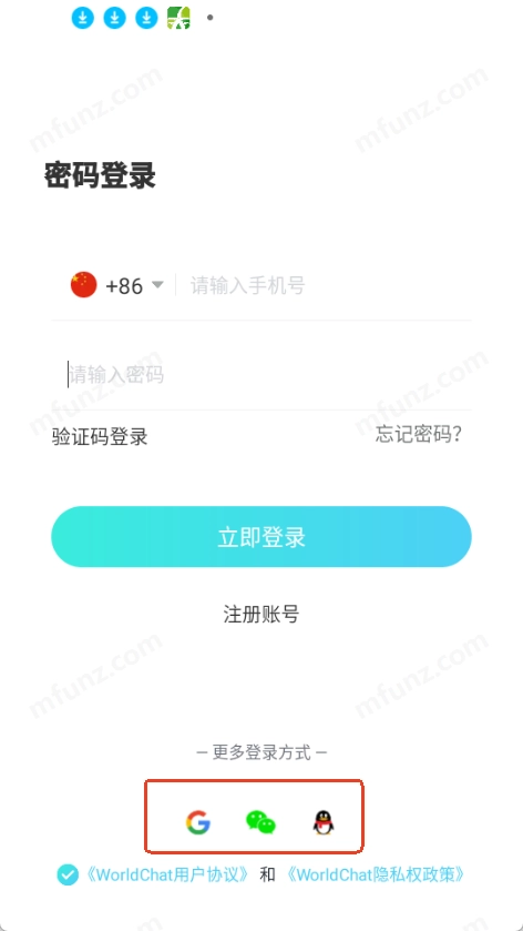 3.也可以使用更多登录方式,用google、微信或qq登录
