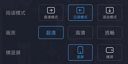 1、首先用户要想合页,得先选择阅读模式中的日漫模式,在这个模式下才能进行合页;