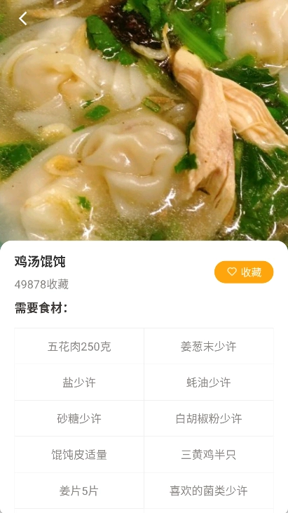 3、随意点击一项菜品,我们将看到详细的食材清单和具体操作步骤。