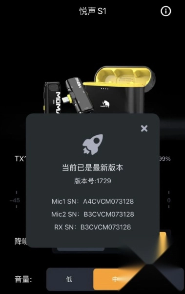 点击即可查看并升级麦克风固件版本