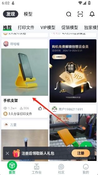 4、在创想云的主页,你可以看到大家分享的模型,选择你想要导入的模型即可导入手机。