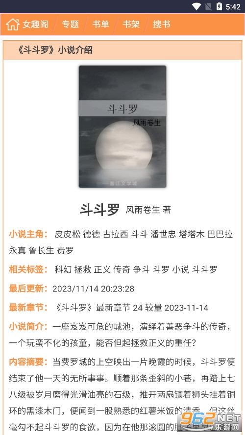 女趣阁小说最新版是一款能免费阅读小说的手机应用,在这里你可以浏览到各类丰富的小说资源,甚至还能找到其他平台上的正版作品。用户既可以通过搜索功能查找心仪的小说,也支持下载到手机进行离线阅读,感兴趣的话就快来体验吧!