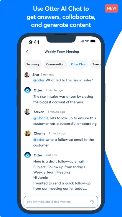 otter翻译是一款十分实用的翻译工具,能够满足用户在多数场景下的翻译需求,它支持现场录音、转录、编辑突出显示、导入、同步等功能,还具备AI笔记功能。实时转录可适用于各类会议、交谈、对话场景,消除语言障碍,让交流沟通更高效,并且会议能自动总结,功能十分强大。