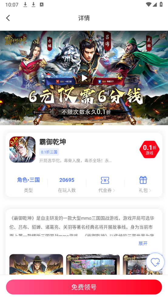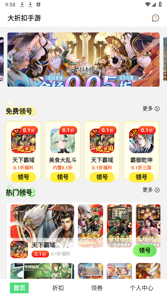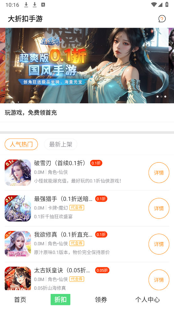 各种超值福利尽在大折扣平台,这里汇聚了海量福利资源,无论是0.1折优惠、H5游戏还是BT游戏应有尽有,不仅能免费领取账号,每天都能畅玩各类游戏资源,平台还会持续更新新内容,你也可以和好友组队一起游玩。
