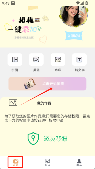1.安装并打开芝士相机,点击相册,再点击开始拍照