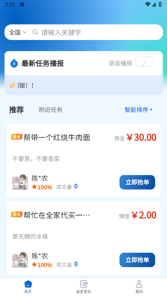 1、用户可以快速找到适合自己的任务或发布任务,一键接单。