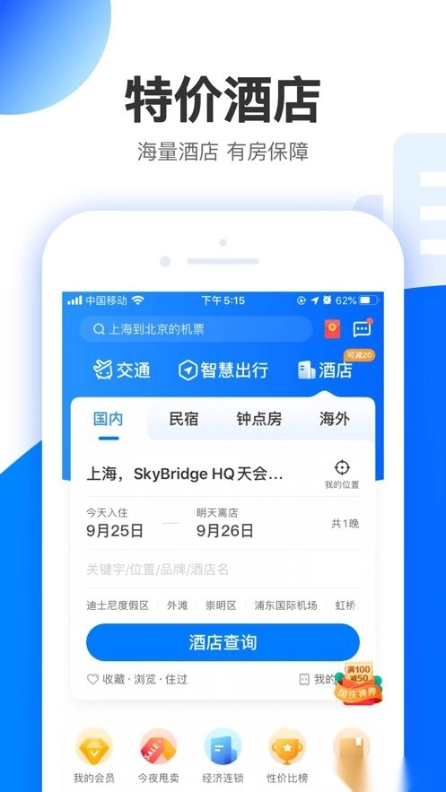 特价酒店、火车票、低价机票、门票、汽车票一站式预订平台