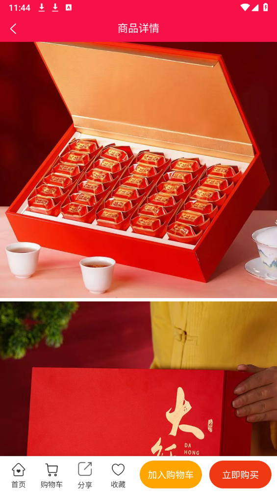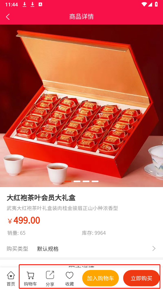 4、可以将商品加入购物车、分享链接以及收藏等。