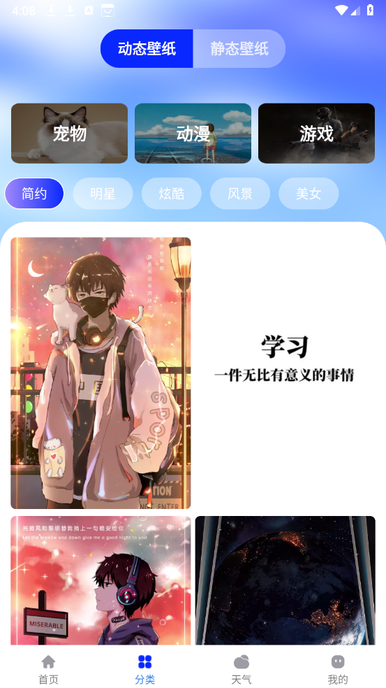 2、进入软件,在首页以及“分类”页面汇集了众多的壁纸资源。