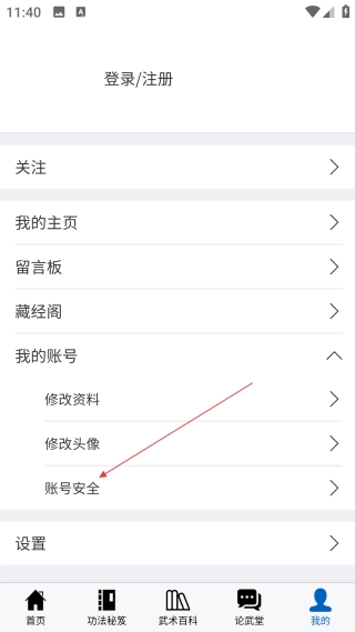在展开的选项里,点击【账号安全】,就能进入账户安全的设置管理界面。