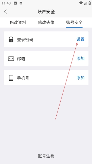 在账户安全页面,找到登录密码选项,点击其右侧的【设置】按钮,就能进入对应的界面进行密码修改操作。