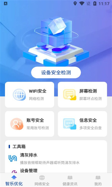 智乐优化达人的安装包分享给各位,这是一款实用性超强的手机优化工具,具备网络检测、屏幕坏点检测、账号安全检测、信息安全检测等多种功能,支持一键管理所有关联的手机设备,还能清理手机内部的灰尘呢。
