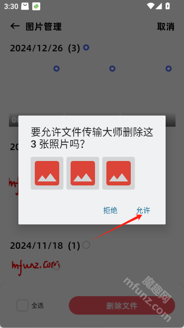 5. 在弹出的对话框里点击允许,不需要的图片就可以删除了。